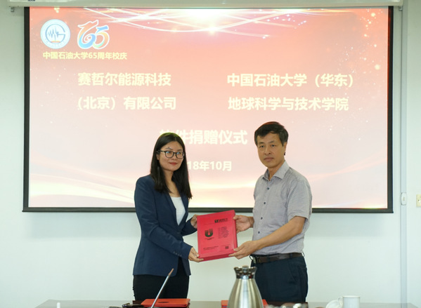 【本站讯】10月1日下午,太阳成集团tyc151cc“赛哲尔能源科技(北京)有限公司软件捐赠仪式”在工科楼C座251会议室举行。捐赠仪式由学院副院长裴仰文主持,院长林承焰、党委书记张卫东、副院长邓少贵等出席捐赠仪式,我校89级校友、赛哲尔能源科技(北京)有限公司法人、总经理赵锋女士向学校捐赠该公司研发的“UniEarth储层岩石物理软件”,学院测井系、地球物理系的师生参加捐赠仪式。