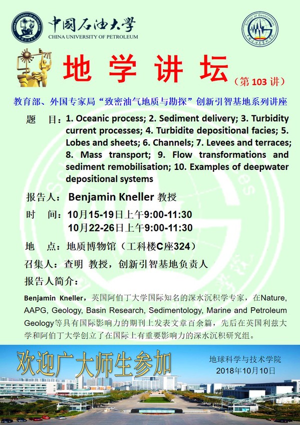 【地学讲坛第103讲】关于英国阿伯丁大学Benjamin Kneller教授系列学术讲座的通知