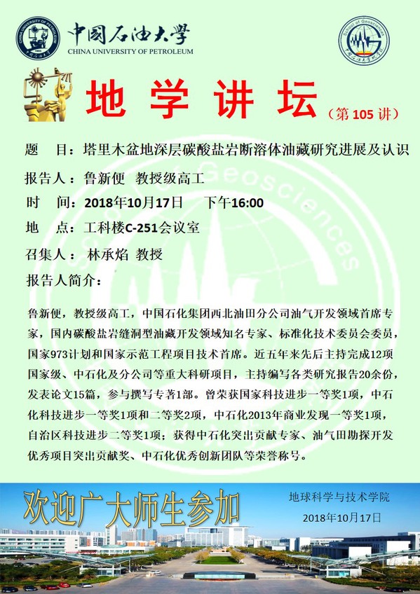 【地学讲坛第105讲】关于鲁新便首席专家的学术报告通知