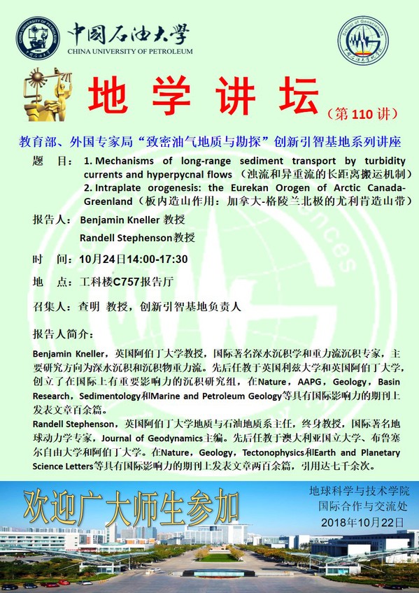 【地学讲坛第110讲】关于Benjamin Kneller和Randell Stephenson教授的学术报告通知