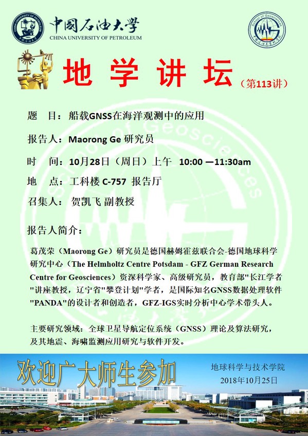 【地学讲坛第113讲】关于葛茂荣研究员的学术报告通知