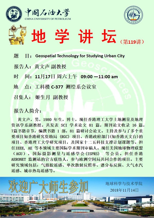 【地学讲坛第119讲】关于黄文声副教授的学术报告通知
