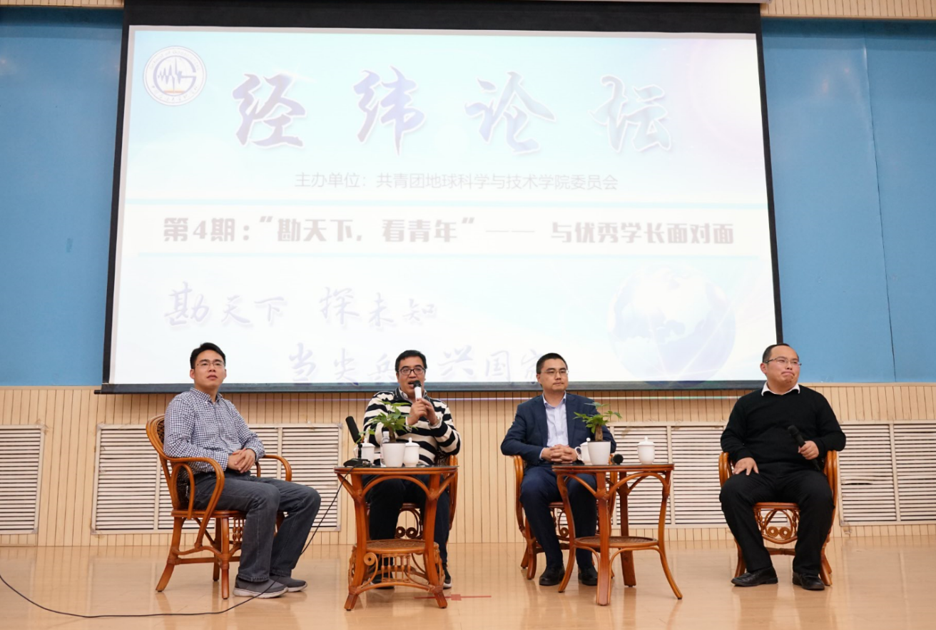 嘉宾宗兆云副教授兼任主持人,他以幽默诙谐的方式拉开帷幕。随后,四位嘉宾分别结合自身成长经历,追忆自己与学校学院的难舍情缘,谈及所处专业的兴衰变化,讲述身为优秀青年的必备品质。
