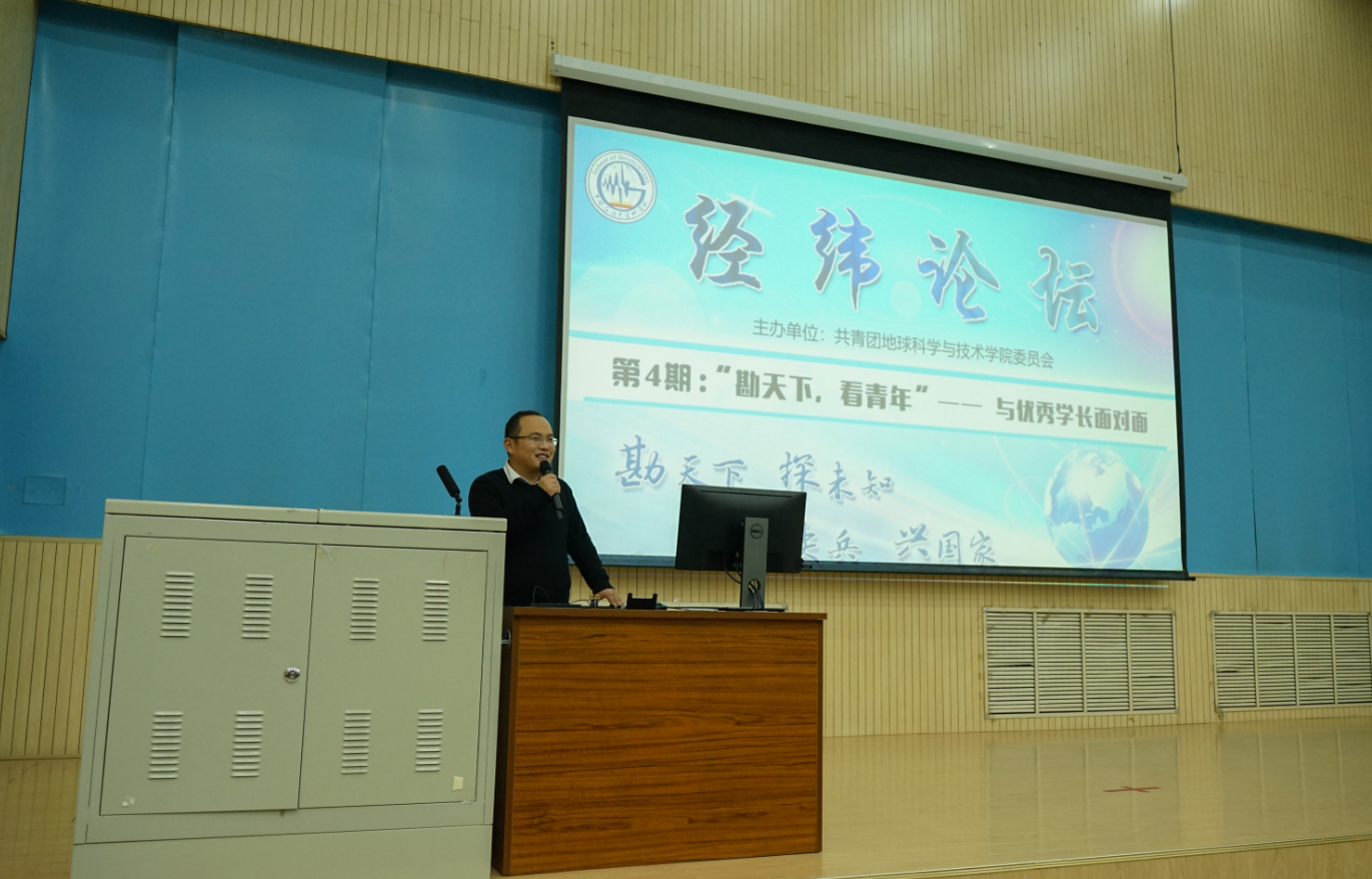 【本站讯】11月24日,太阳成集团tyc151cc《大学生学涯指导课》第二课暨经纬论坛第四期在南教楼100室举行,此次论坛以“勘天下,看青年——与优秀学长面对面”为主题,邀请国家自然科学基金优秀青年科学基金项目获得者田辉、张彪、蔡建超,长江学者奖励计划青年学者项目获得者宗兆云与学院师生畅谈人生感悟,共话成长。教务处副处长刘臻,学院党委书记张卫东,副院长吴智平,党委副书记徐永涛及300多名大学生共临现场,聆听优秀学子的成长经历。