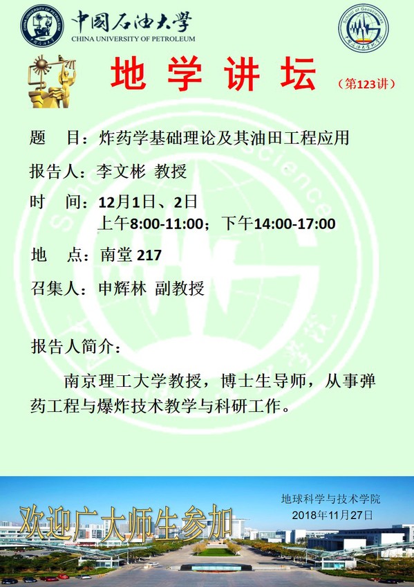 【地学讲坛第123讲】关于李文彬教授的学术报告通知