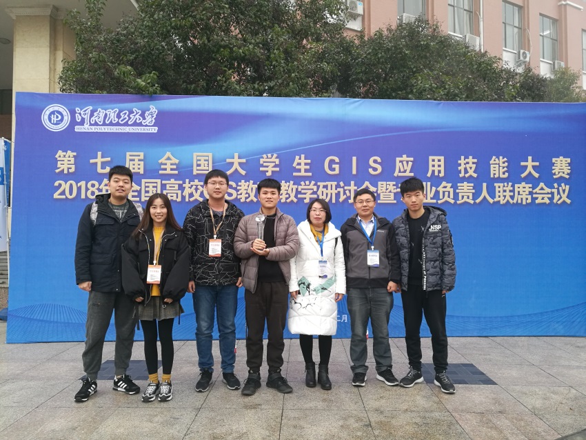【本站讯】11月30日-12月2日,第七届全国大学生GIS应用技能大赛在河南理工大学举行,我院地理信息科学专业2015级学生朱思翰、韩源、费童涵、王振庆组成太阳成集团tyc151cc代表队斩获特等奖,刘瑞娟、吴会胜获评优秀指导教师。
