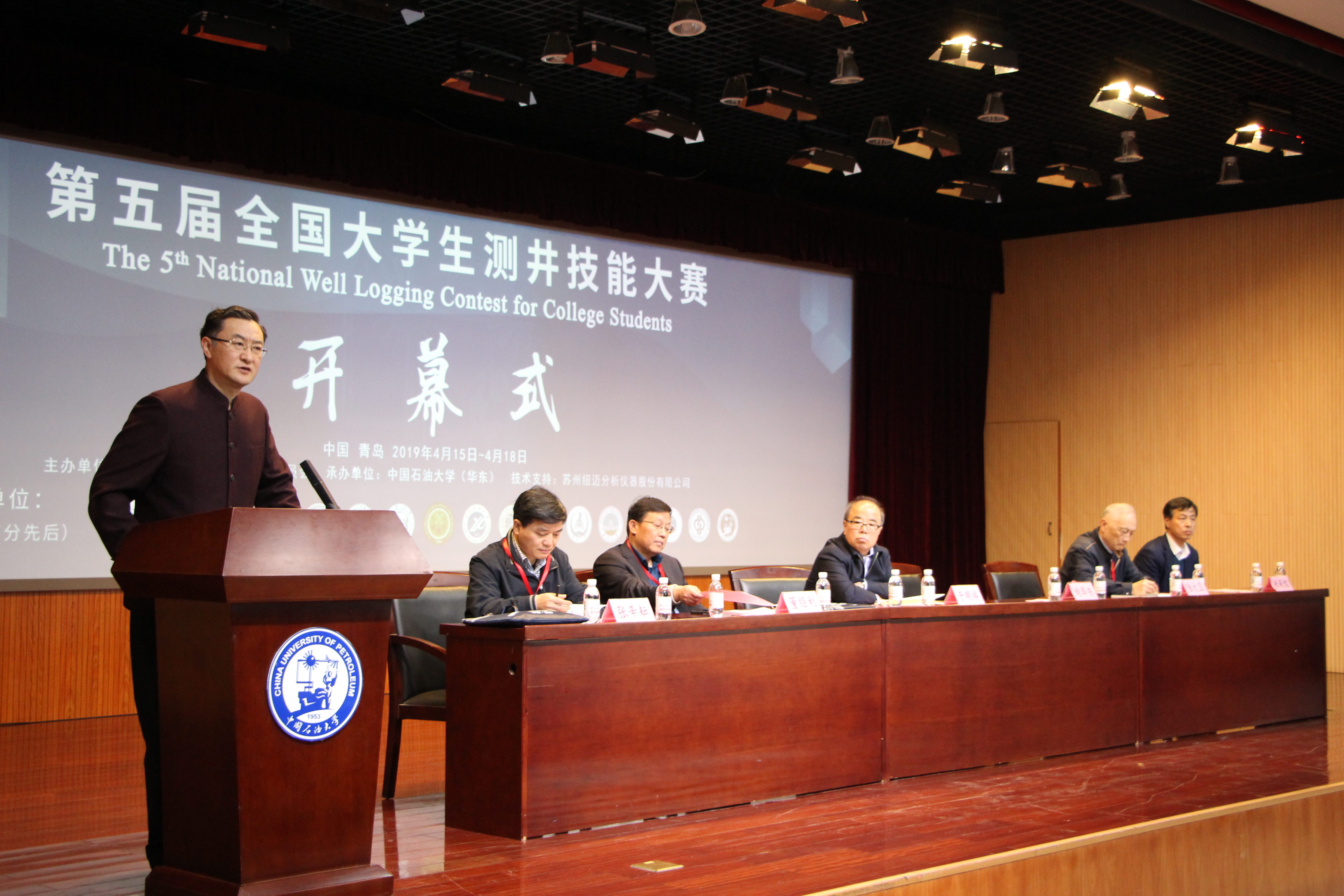 【本站讯】4月15日至18日,由我院承办的第五届全国大学生测井技能大赛成功举行。我校党委副书记、副校长刘华东代表学校在开幕式上致欢迎辞,中国石油学会副理事长兼秘书长于明祥,大赛组委会名誉主任、中国石油学会测井专业委员会高级顾问、中石油集团公司咨询中心专家陆大卫,测井专业委员会副主任、中石化胜利石油工程有限公司首席专家董经利,学院院长林承焰教授等出席开幕式。