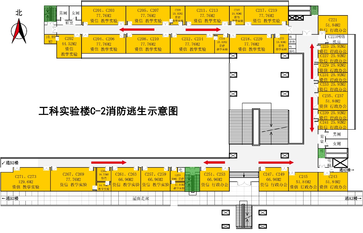 工科楼C座1-3楼消防演练疏散示意图