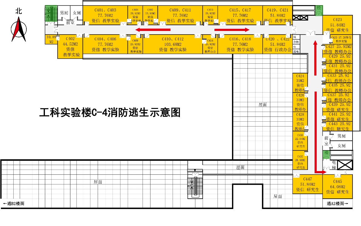 工科楼C座4-7楼消防演练疏散示意图