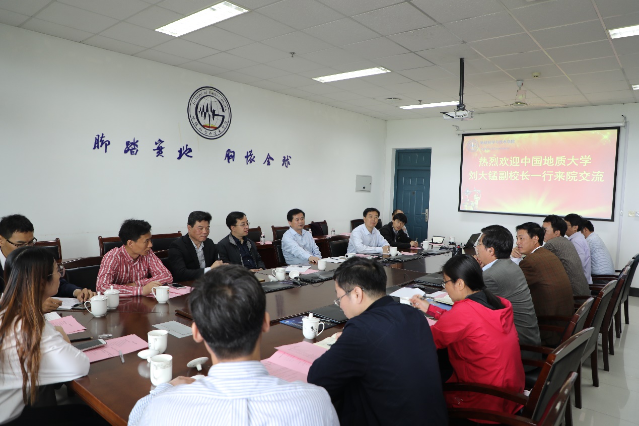 【本站讯】5月12日上午,中国地质大学(北京)副校长刘大锰教授一行10人来院交流。座谈交流会在工科楼C座251会议室举行,学院班子成员、资源系和非常规研究中心教师代表参加座谈。座谈会由学院党委书记张卫东主持。