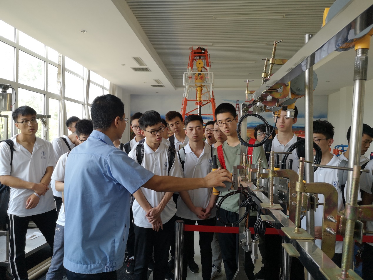 测井公司生产实习分为四个小组在开发测井工程部、勘探测井工程部、生产测井工程部以及资料解释研究中心进行。学生在仪修班实地参观和实训,工程师讲解了仪器的工作原理、基本结构和用途,认识了哈里伯顿公司的微电阻率扫描成像测井仪、贝克休斯公司的核磁共振测井仪等进口仪器和自主研发的仪器。“师傅,放射源放在哪个位置?源强是多少呢?”“为什么要重复测量呢?”学生不时提出问题,工程师耐心地为他们答疑解惑。在测井解释研究中心,专家向学生讲解了测井资料处理的总体流程以及各个环节的主要任务,展示了应用相关软件平台完成一口井的核磁成像测井资料处理的过程。最后,学生到教学井的施工现场观摩测井施工流程,实地认识了测井小队的工作情况。实习期间实习师生还参观了胜利油田及整个华北油区的第一口发现井——华八井,共同学习了老一辈石油人吃苦耐劳、勇于探索的精神。在学习实践专业知识之余,学生积极与测井公司专家、员工交流石油行业发展趋势及就业现状,对未来有更明晰的认识。