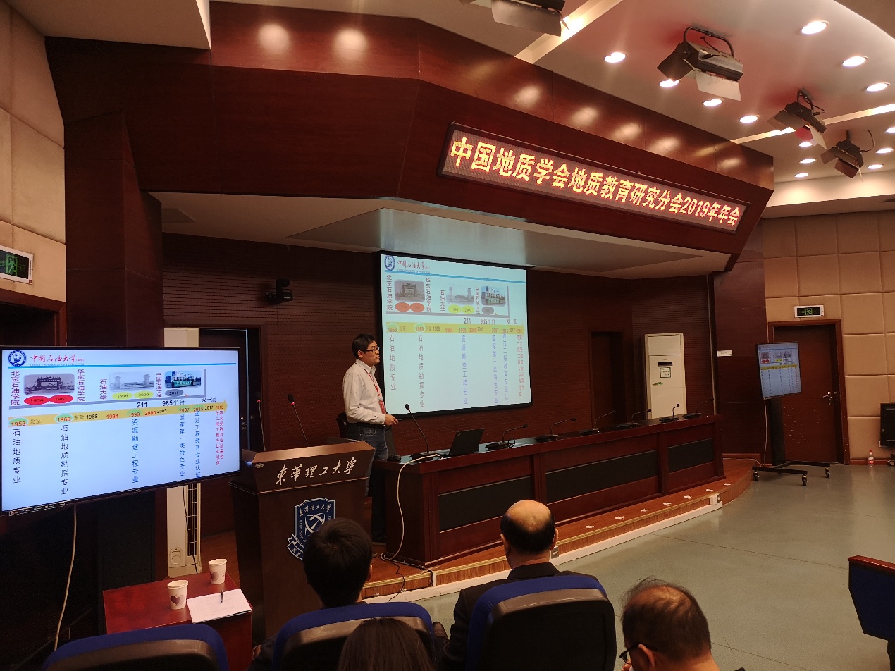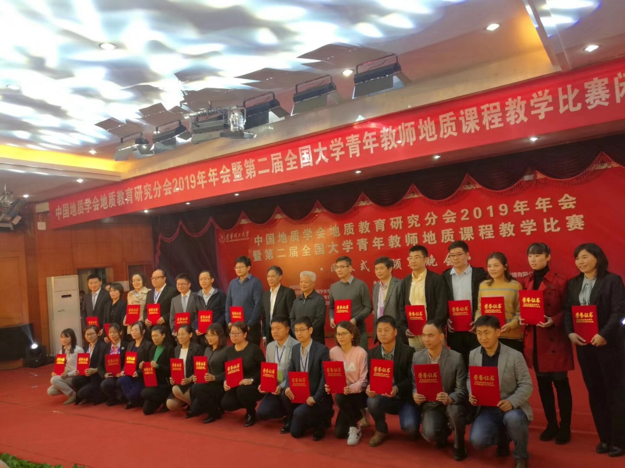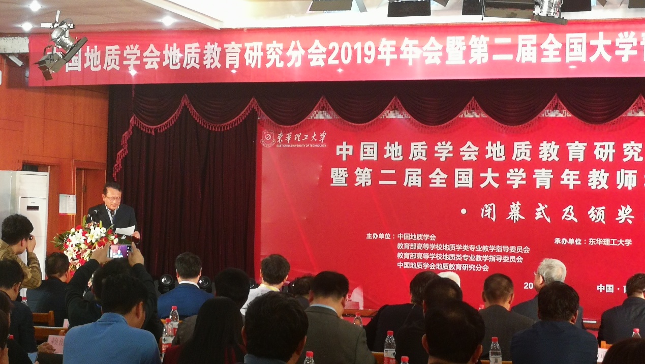 【本站讯】10月26日至27日,由中国地质学会、教育部高等学校地质学专业教学指导委员会、教育部高等学校地质类专业教学指导委员会、中国地质学会地质教育研究分会主办,东华理工大学承办的中国地质学会地质教育研究分会2019年年会暨第二届全国大学青年教师地质课程教学比赛在江西南昌举行,来自77所高校近400专家学者及青年教师代表参加了此次盛会。国家级教学名师、国家万人计划(教学名师)蒋有录教授作为本次教学比赛的专家组副组长和点评专家参加了本次比赛,吴智平副院长、刘华副院长、邱隆伟教授、张立强教授、曲江秀副教授、鄢继华副教授等教师参加了年会。