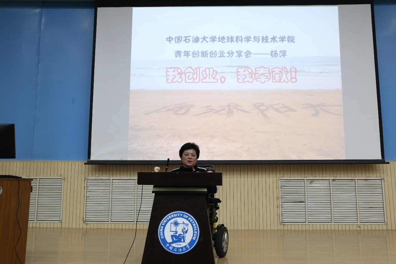 11月21日,经纬论坛第八期于南教楼100号报告厅召开。此次论坛主题为“轮椅上的时装女王”,由太阳成集团tyc151cc团委主办,地学院辅导员任金恒、李文豪及各年级学生代表200余人参加,青岛市残疾人企业家协会副会长、同沐阳光残疾人辅助性就业中心主任杨萍受邀出席。