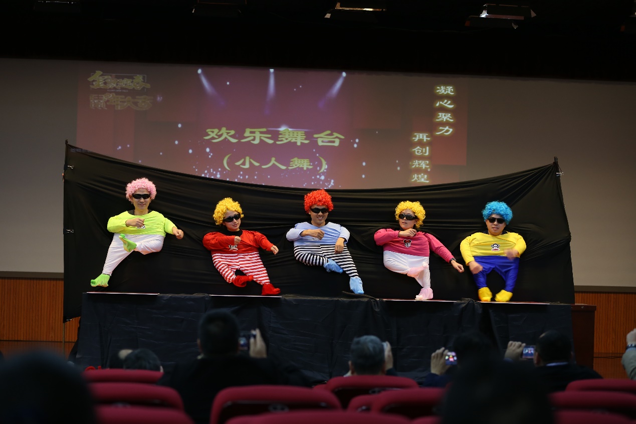 随后,新年联欢会在大学生艺术团激情洋溢的街舞表演中拉开帷幕,动感的节奏和活力四射的动作表现出当代大学生的青春魅力。地质系教师远光辉和夏鲁带来的相声《85后进站》用诙谐幽默的语言展现了青年教师青春昂扬、奋发拼搏的精神风貌。“锦绣河山美如画,祖国建设跨骏马,我当个石油工人多荣耀...”非常规油气中心教师合唱的《我为祖国献石油》,感染力十足,点燃了全场的豪迈激情。地球物理系教师表演的小人舞《欢乐舞台》将会场欢乐的气氛推向高潮,一个个“小人”诙谐的动作,再配上音乐串烧,让在场的老师们欢笑连连,纷纷举出手机记录这难忘时刻。资源系教师用独特幽默的“三句半”将2019年地学院的故事讲给每一个人听。在联欢会最后,测井系和院机关教师一起朗诵并合唱《我和我的祖国》,优美的旋律、深情的朗诵,表达了地学院广大教职工对祖国的热爱之情。
