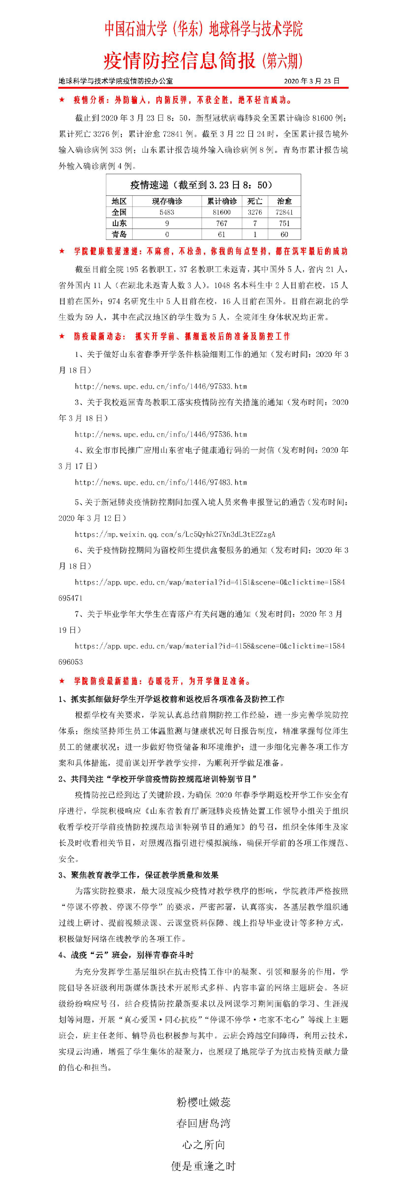 【疫情防控】太阳成集团tyc151cc疫情信息简报第六期