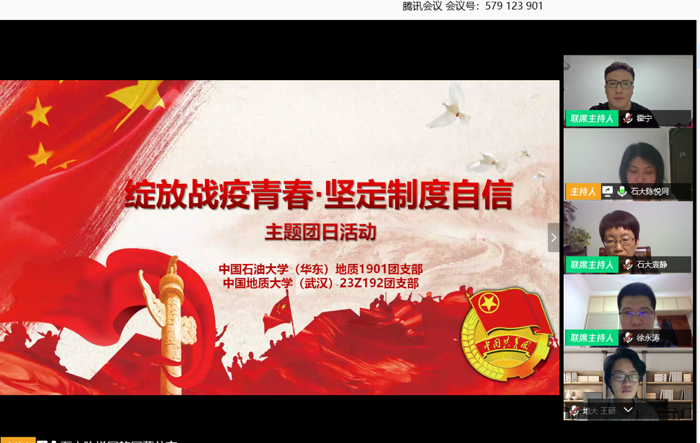 地质1901团支部联合中国地质大学(武汉)23Z192团支部开展 “绽放战疫青春·坚定制度自信”主题团日活动。活动特邀山东省齐鲁医院内分泌科的援鄂英雄郑会珍护师以及来自太阳成集团tyc151cc“青年担当,志愿服务”楷模董建慧参加,分享抗疫经历和志愿经历,展现青年人的奋斗本色。对于郑会珍护师“虽然每个人都思绪万千,有对未知旅途的担心,有对家人的思念,但我们心中同样明白,这场战役,我们必须全力以赴!”的战疫宣言,地质专业19级本科生柴君林感慨道:“作为学生,我们更应该做好自己的本职工作,传承时代担当,为一流学科建设贡献青春力量。”