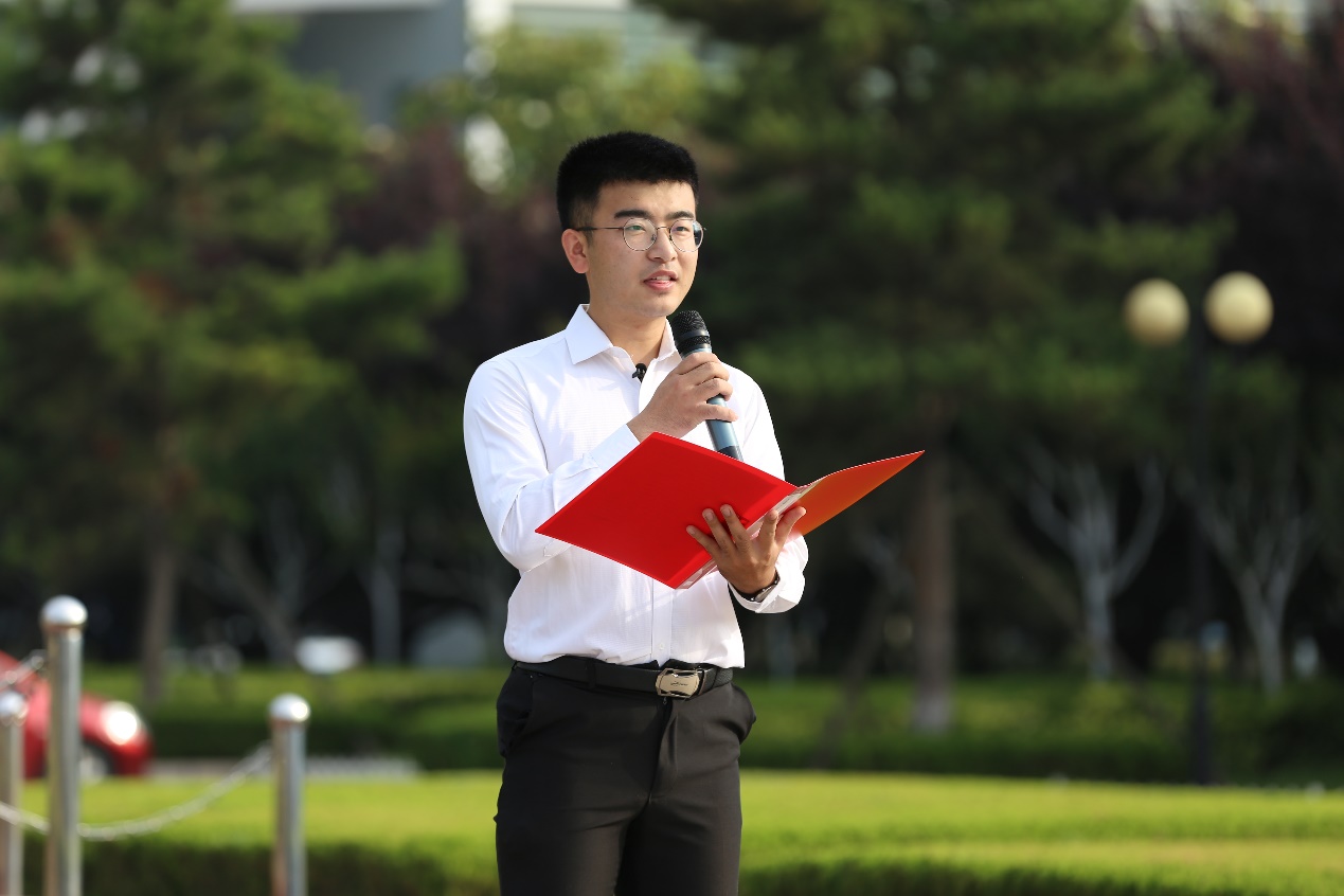 图五:毕业生党员代表李进步国旗下演讲 潘奕铭摄影