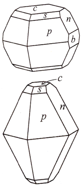 形态:晶形少见,偶见双锥状或厚板状。集合体常呈致密块状、土状、被膜状、瘤状、钟乳状等。