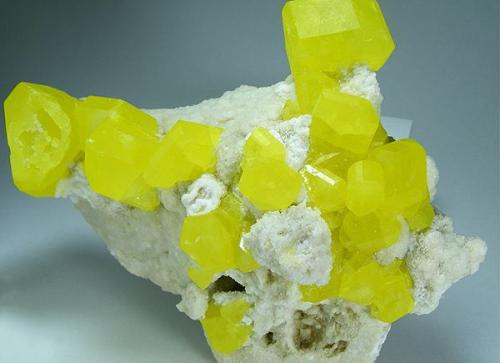 (2)沉积型:由生物化学作用(硫细菌作用)而成。常与石膏、方解石、天青石等伴生。该类型一般较大,具有较大的工业价值。