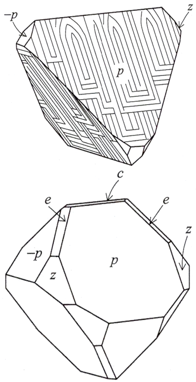 形态:晶形呈四方四面体,但不常见。{112}}晶面上常出现生长条纹,但在晶面上却很少出现,且二者光泽也不同。通常为致密块状或粒状。