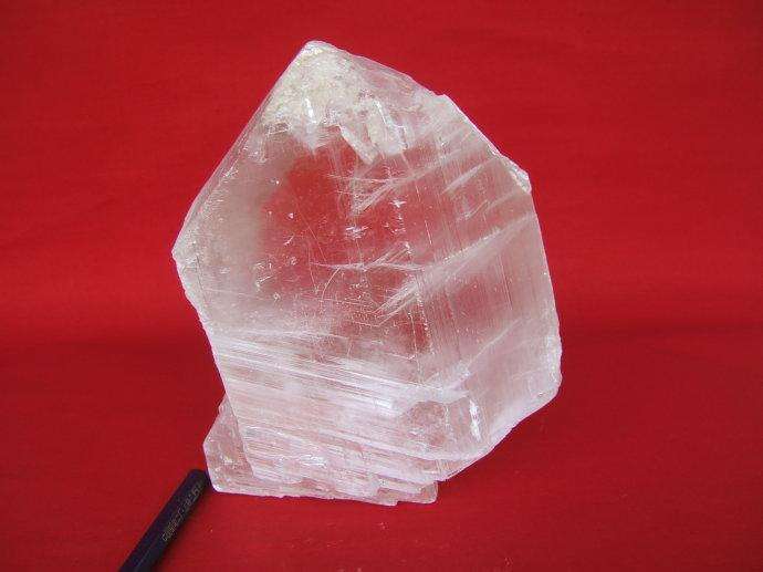 物理性质:通常呈白色, 无色透明的晶体称透石膏( selenite);玻璃光泽,解理面显珍珠光泽。纤维状集合体称纤维石膏(satin spar),呈丝绢光泽。硬度2:;解理平行{001}极完全,平行{100}和{011}中等;薄片具挠性。密度2.30-2.37g/cm3。