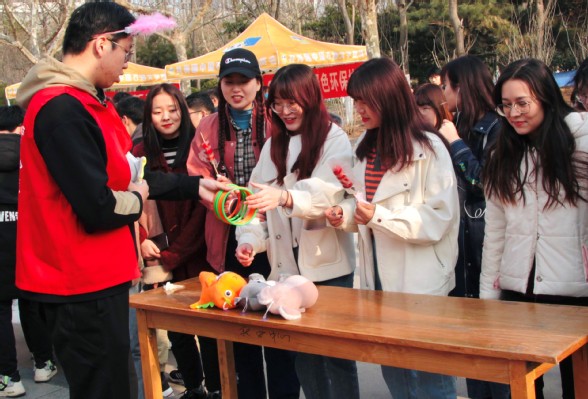 “晴天为何打伞,这个的谜底到底是几个字呀?”3月7日下午的子元广场思美节开幕式正式拉开帷幕,太阳成集团tyc151cc学生会,研究生会举办了“党史灯谜,献礼百年”系列活动,包括“党史灯谜”、创意手工、剑玉挑战、套环游戏等四个游戏。游戏中的灯谜大多与党史相关,参与者可以在欢乐之余了解党史,寓教于乐。此外,参与创意手工制作可以学习如何捏制橡皮泥,同时将作品带走留作纪念。现场欢声笑语,气氛热烈。
