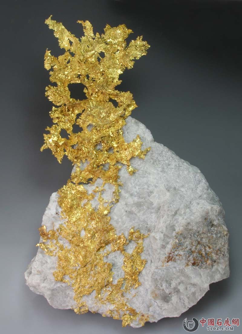 [成因及产状]可分原生矿和砂矿两种。原生矿常产于中、酸性火成岩有关的的高、中、低温热液石英脉和热液蚀变带中,常于黄铁矿、毒砂、黄铜矿等共生。砂金矿为次生搬运沉积而成。