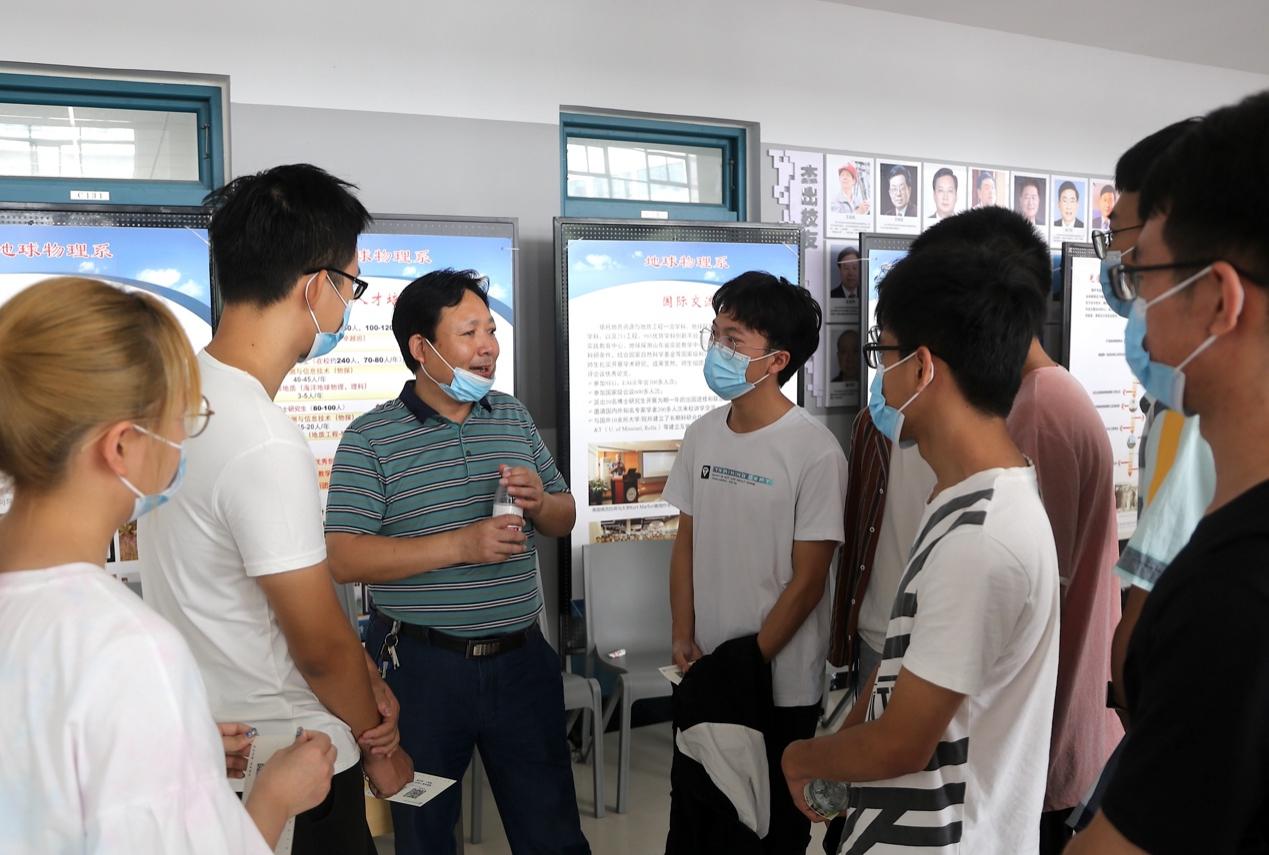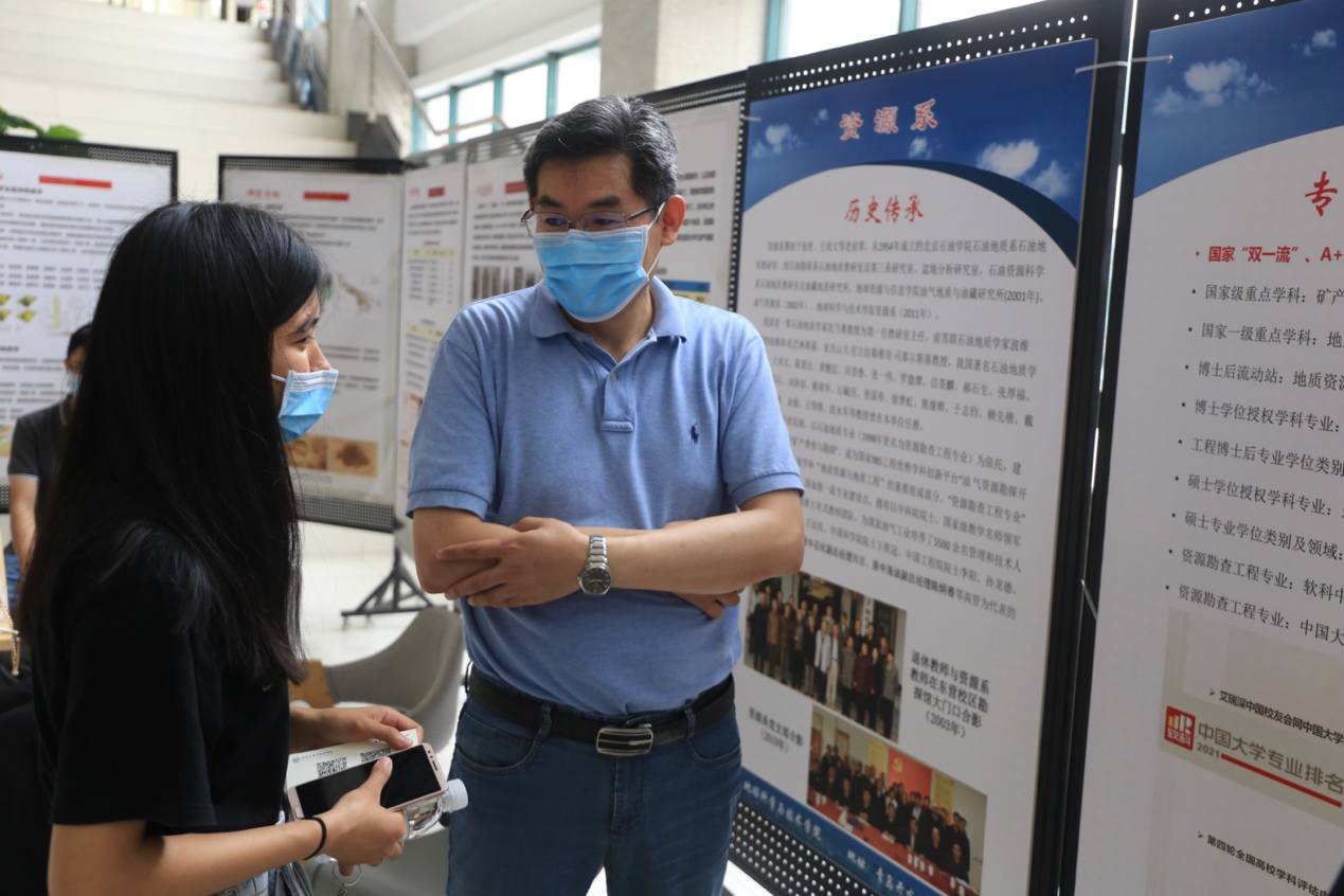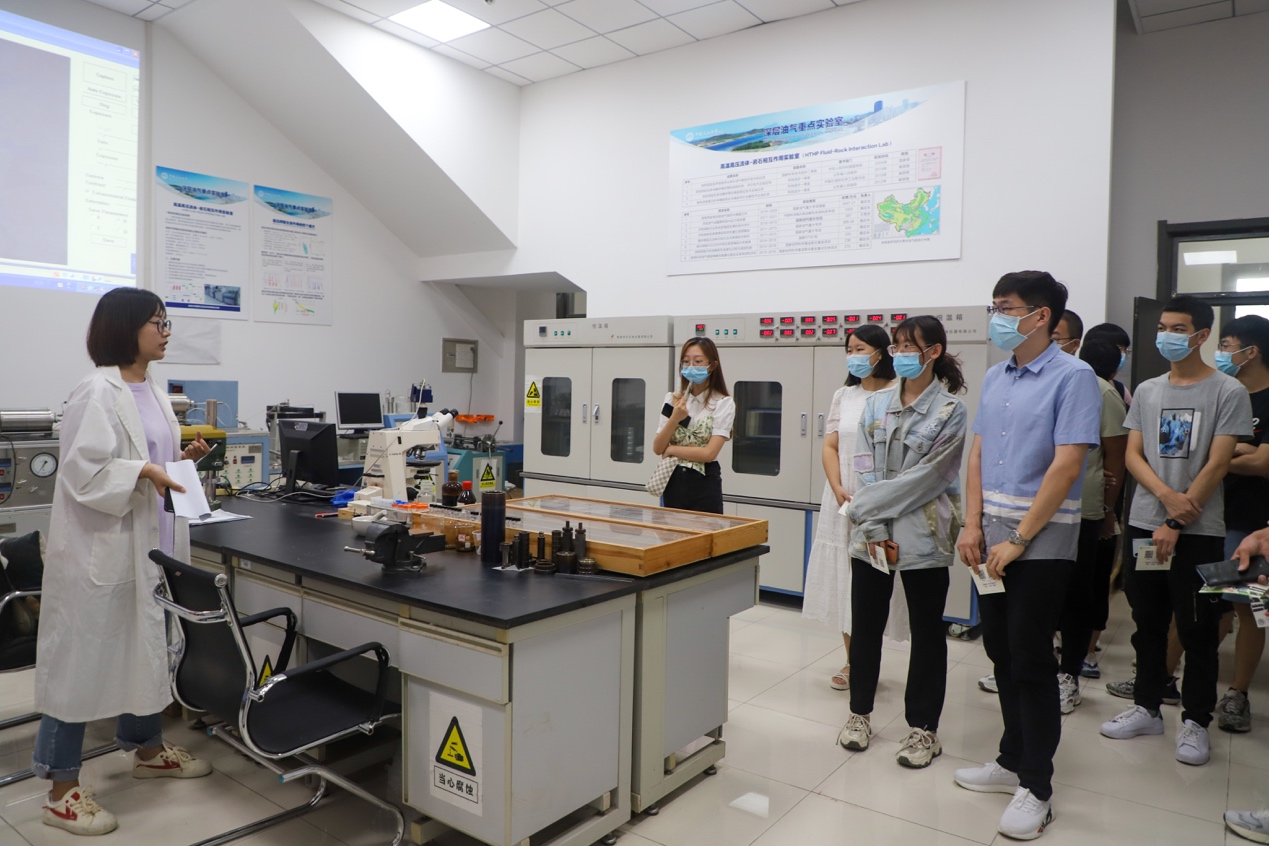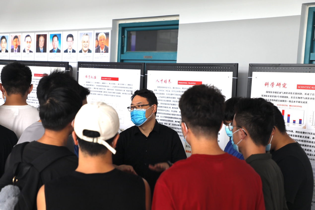 “勘未来”开放日活动主要分为学院介绍、导师面对面和实验室参观三个环节,学院各系(中心)在工科楼C座大厅布展与学生现场交流学科基本情况、研究方向、研究成果等,开放地质博物馆及20余间高水平科研实验室供学生参观。学生参观交流前,副院长宗兆云介绍了学院文化、学科建设、师资队伍、科研平台、培养保障体系及学院研究生招生政策等,并与学生互动交流。活动中,导师面对面与实验室参观同步交叉进行。“同学们,我们的深层-超深层油气研究很前沿也很有优势,欢迎报考!”老师,咱们这个研究方向以后发展前景怎么样?”“如果我有幸加入团队,以后会有去出国交流深造的机会吗?应该提前做哪些准备?”工科楼C座大厅内学生围在导师周围,交流碰撞,气氛热烈。9支实验室参观队伍在志愿者带领下,分三个批次前往特种实验楼。在X射线CT实验室、高温高压岩石物理实验室、测井井群实验室、油气同位素实验室等实验室参观时,学生近距离地接触相关实验仪器,并有机会亲手做模拟实验。资源1802班沈安超激动地表示,“原来油气地学研究可以这么‘高大上’,一流的科研平台、一流的师资队伍,我更有信心在这个学科领域干出一番事业来!”同时,学院设计文化卡片,在实验室路线中设置“勘”、“未”、“来”三枚纪念章,学生集齐后可以领取学院文化纪念品,还可以通过卡片上的二维码了解更多学院信息。
