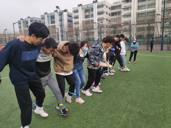本次趣味运动会共设“三人四足接力赛”、“团体跳绳”、“快乐传真”、“扔沙包”等八个项目。“情同手足——三人四足接力赛”项目对团队的默契度有很高的要求,需要队员相互配合,步伐一致,冲向终点。参赛队员赵贤阳说道:“这个项目很考验成员之间的协调配合,有时候会被队员绊倒,但是大家都笑得很开心。”在“快乐传真”环节中,每队四人,队员之间不能交谈,只能以肢体语言传递信息,队员们为取得胜利纷纷使出浑身解数,现场一片欢声笑语。在“扔沙包”项目中,参赛队伍分为进攻方和防守方,防守方需要从场地一端跑至另一端,同时还要闪避进攻方扔来的沙包,被沙包击中的队员将被淘汰。“团体跳绳”是大家非常熟悉的游戏,比赛按照单位时间内跳绳的总数进行排名。每项活动同学们都积极参与,现场氛围十分热烈。