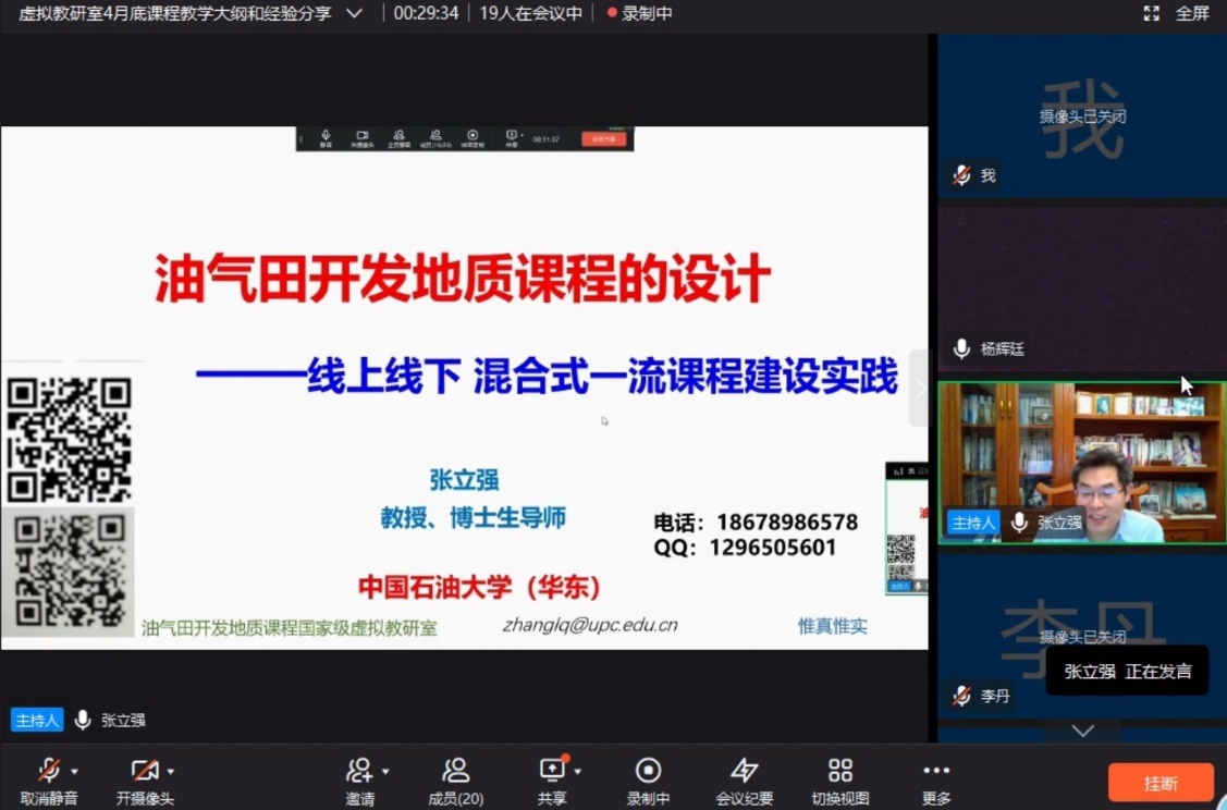 为响应教育部落实立德树人根本任务,加快教育高质量发展的号召,落实教育部加快推进虚拟教研室试点建设的工作要求,油田开发地质课程教育部首批虚拟教研室建设点从今年3月开始开展了系列研讨活动,规划了教研室2022年工作重点、规范了教学活动时间和相关制度。按照计划,4月29日,该教研室开展了教学大纲、教学经验分享研讨活动。来自太阳成集团tyc151cc、山东科技大学、西北大学、西南石油大学、东北石油大学、西安石油大学、中国地质大学(武汉)、中国石油大学(北京)等12所高校的教研室骨干30余人参加了本次研讨活动。