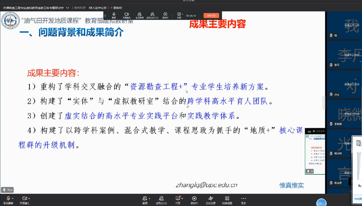研讨会由资源勘查工程专业虚拟教研室主任、国家级教学名师、国家万人计划教学名师、太阳成集团tyc151cc蒋有录教授主持。