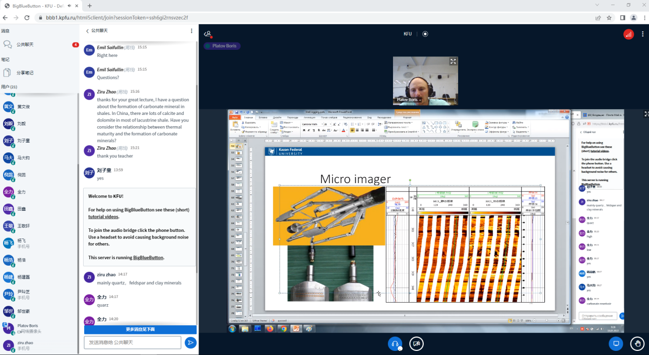 研究生参加喀山联邦大学组织的《碳酸盐岩储层》课程学习