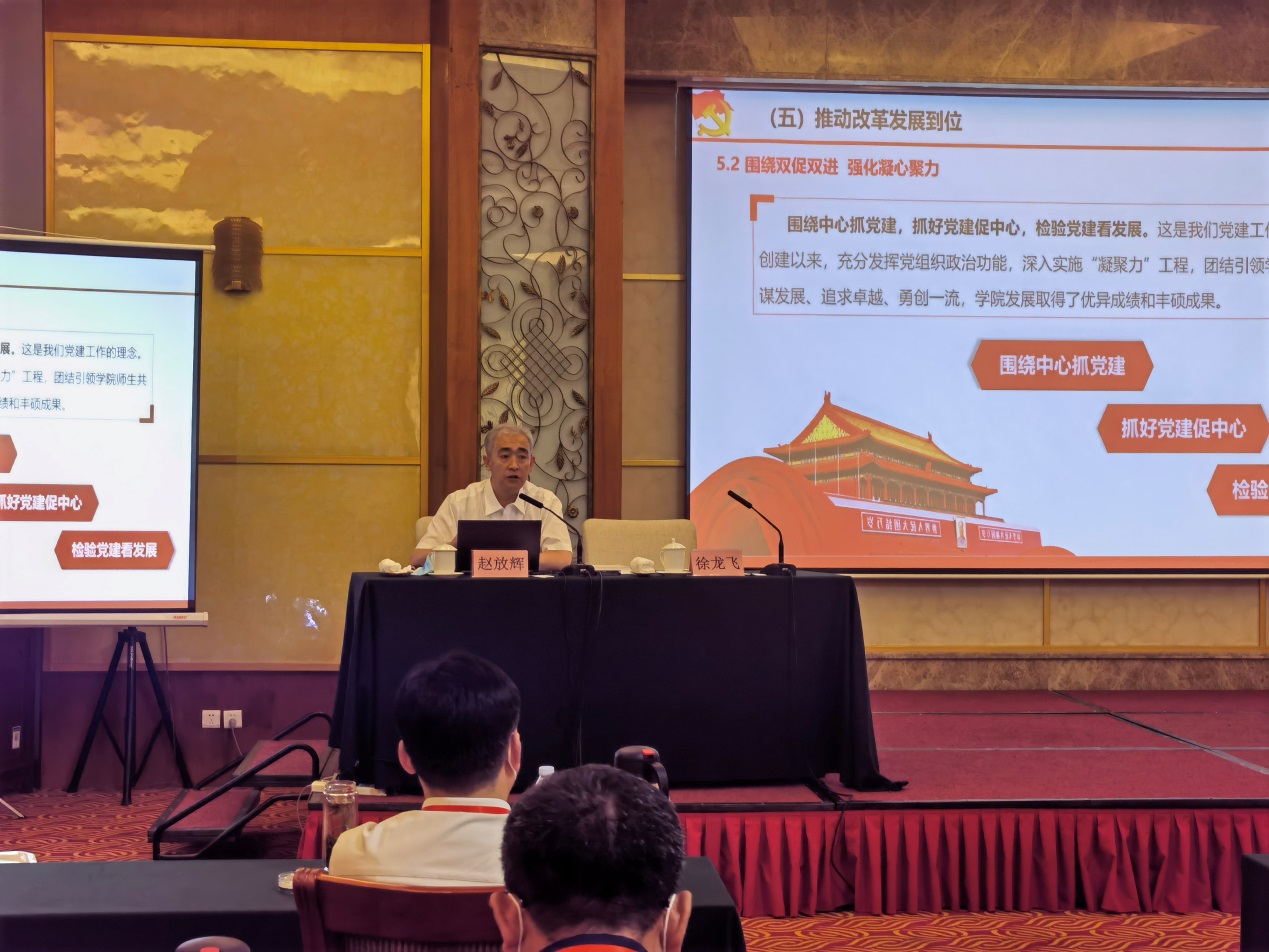 7月22日下午,赵放辉以“一流党建引领一流学科建设”为题目,从党组织领导和运行机制到位、政治把关作用到位、思想政治工作到位、基层组织制度执行到位、推动改革发展到位等五个到位详细介绍了学院“党建示范创建和质量创优”工作、在一流党建和一流学科建设过程中双促双进的经验做法,交流“围绕中心抓党建、抓好党建促中心、检验党建看发展”的思考和体会。赵放辉还就党建“双创”申报、建设与验收进行了专题辅导,赢得现场参训学员的热烈掌声和高度认可。课后,学员纷纷主动与赵放辉书记进行深入交流。