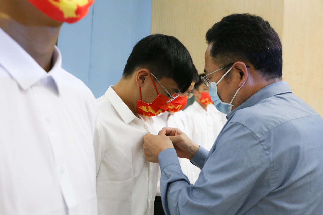 操应长教授为2022级本科生新生代表佩戴校徽 杨永超摄影