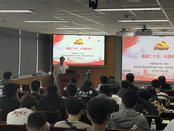 为增进测井系师生交流,10月14日下午,测井重点实验室研究生第一党支部与测井专业本科生党支部于工科C757联合举办“喜迎二十大,心语成与长”师生交流会。研究生党支部书记周小松主持会议,范宜仁教授、邓少贵教授、苏远大教授、张锋教授、谭宝海副教授、陈雪莲副教授,党支部学生代表及测井专业2022级全体本科生出席参加。
