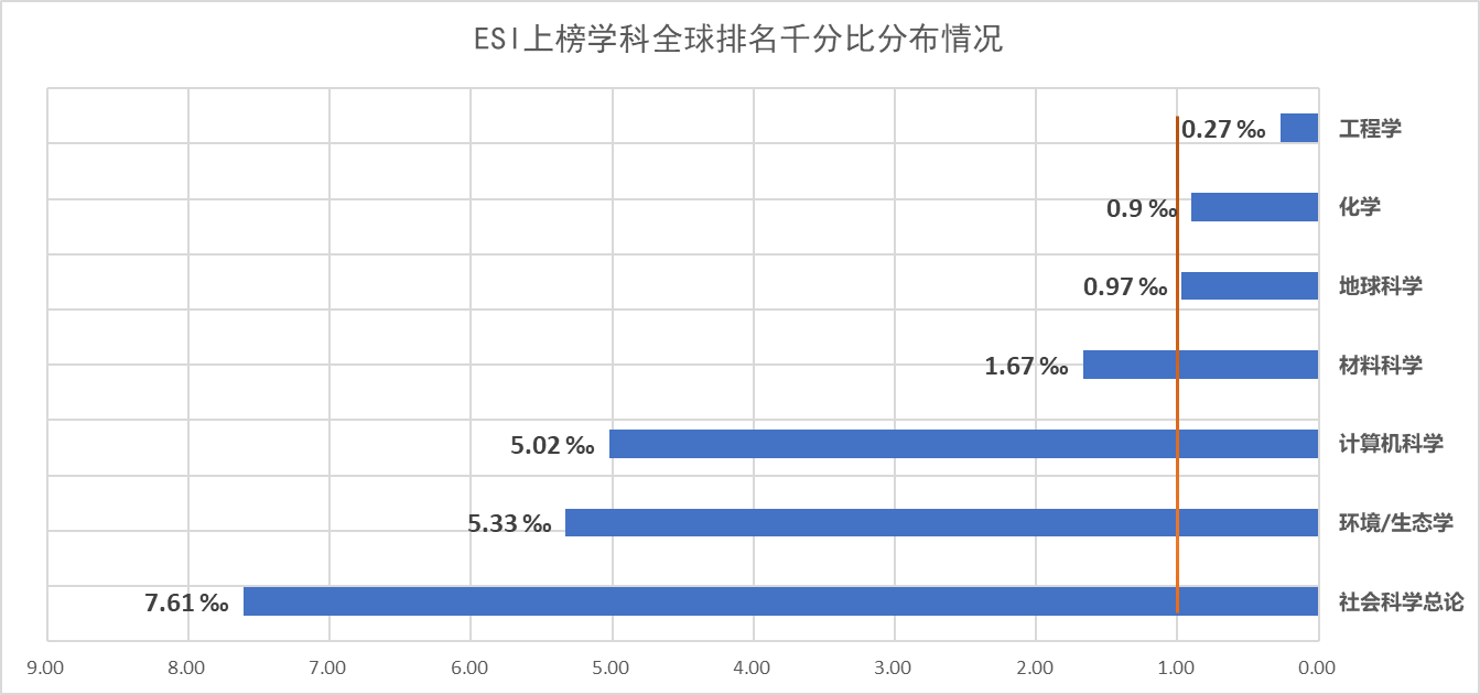 目前,学校共有7个学科进入ESI全球排名前1%,分别是化学、工程学、材料科学、地球科学、计算机科学、环境/生态学、社会科学总论。其中,工程学进入ESI全球前万分之2.7,化学进入全球排名前0.90‰,地球科学进入前0.97‰。