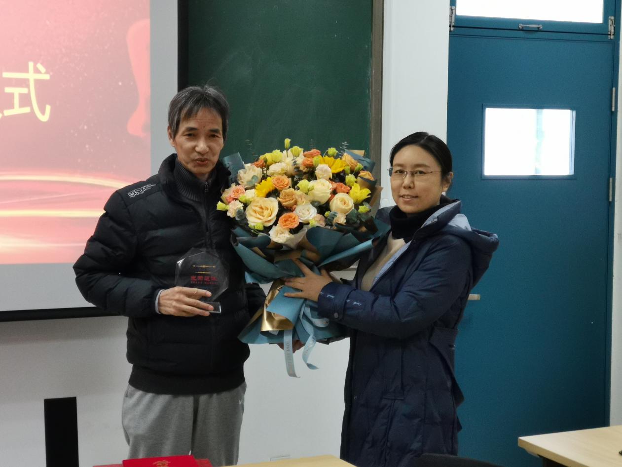 院长刘华为杨国权老师颁发纪念品及鲜花 张军华摄影