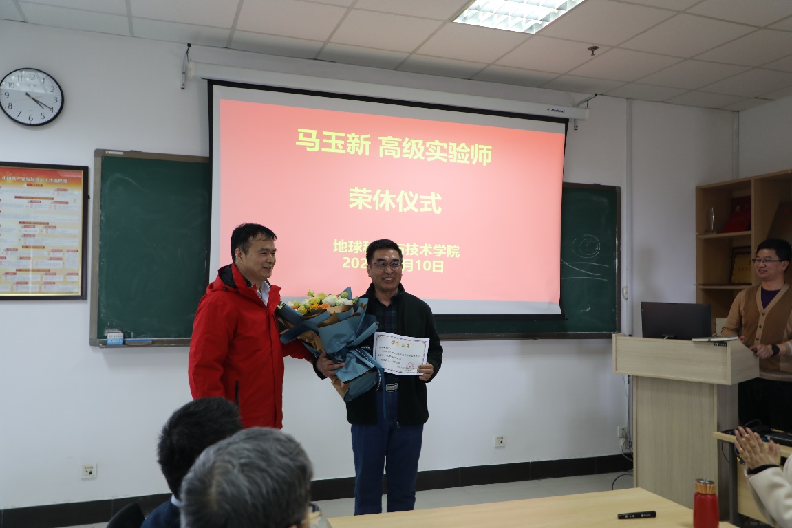 3月10日下午,学院在C365会议室隆重举行马玉新老师荣休仪式。学院党委副书记郑珊珊,工会主席张军华教授及地质系全体教师参加活动。会议由地质系党支部书记孟凡超主持。