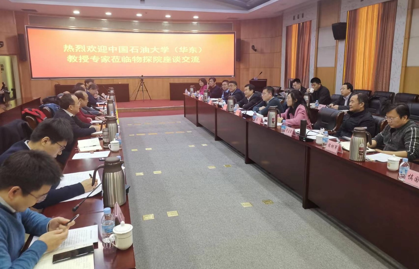 在中石化胜利油田物探研究院,座谈双方分别介绍了各自单位的基本情况,并进行了广泛充分地沟通交流,双方一致同意在油气地球物理勘探科研领域以及本科、研究生和博士后等不同层次人才培养等方面深入开展合作。