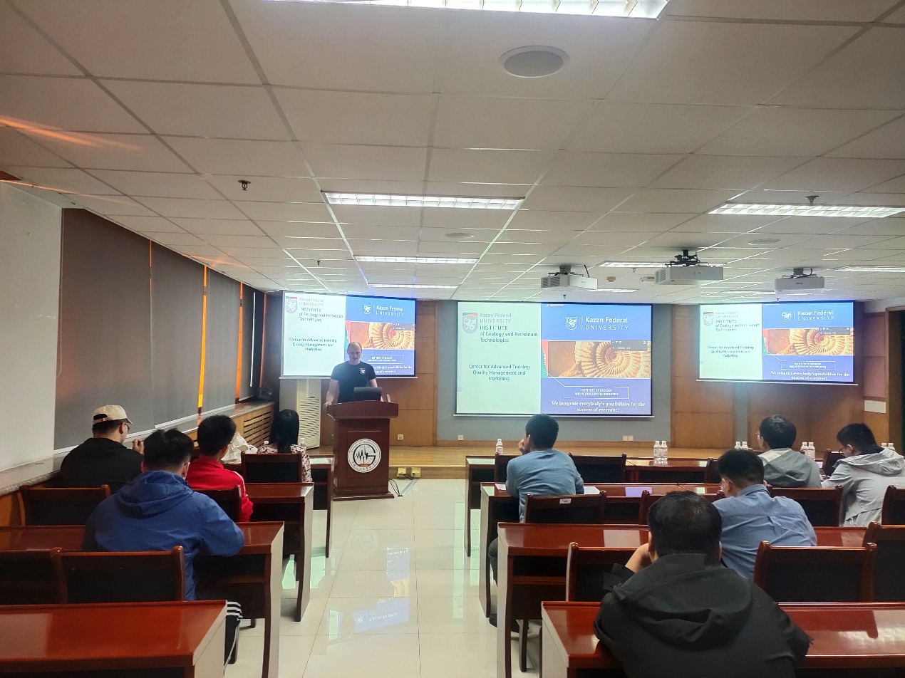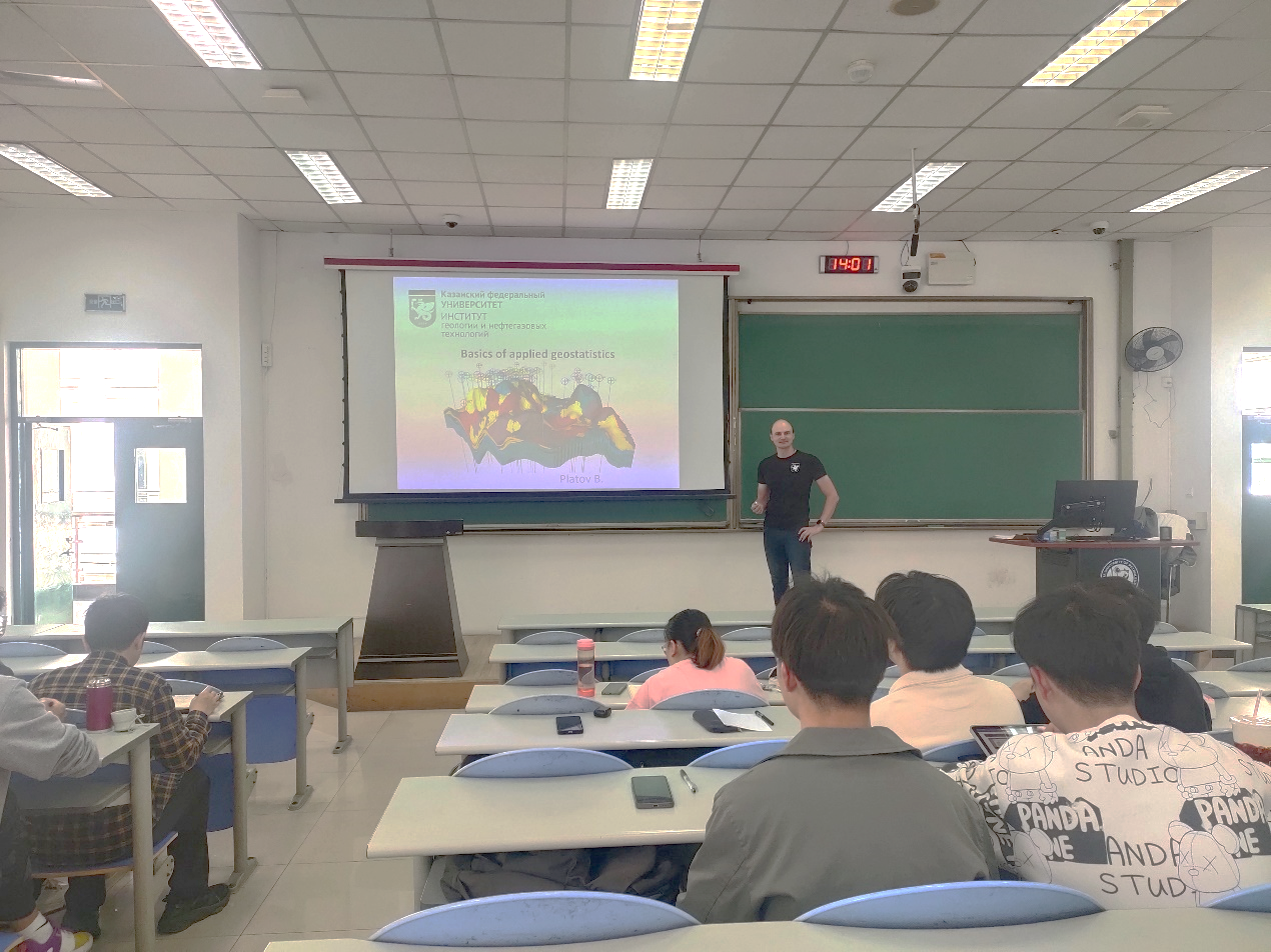 5月7日-5月12,我院申请并获批的2023年国际教育周研究生课程《地球科学与数据分析》顺利完成授课,该课程由俄罗斯喀山联邦大学Boris Platov副教授开设,主要讲授如何利用地质统计数据构建静态地质模型,课程内容包括变异函数及其参数、克里金和高斯随机函数模拟等。学院共20名研究生参与上课,通过课程学习和Boris副教授的认真讲解,学生掌握了建立静态地质模型的过程以及地质统计方法的具体应用。同时,全英文的课堂交流和互动也锻炼了学生的英语口语,提高了学生的英语交流能力。在课程授课之余,Boris Platov副教授分别与学校国际合作处和太阳成集团tyc151cc就研究生双学位项目进行了交流,并参加学院组织的国际交流项目宣讲动员会,为学院100多人进行了现场宣讲。