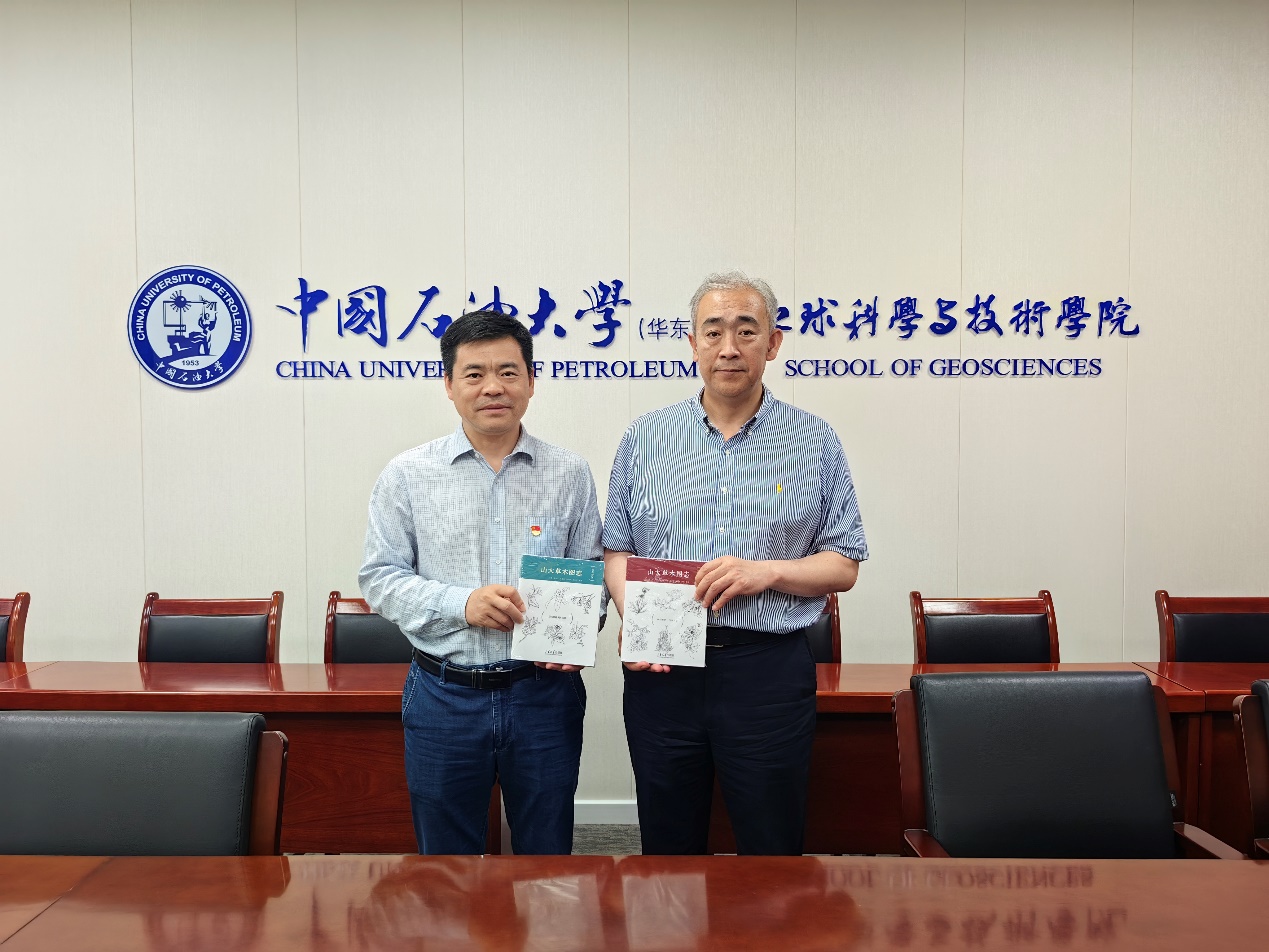 孟凡超为王纪磊一行介绍学院地质博物馆