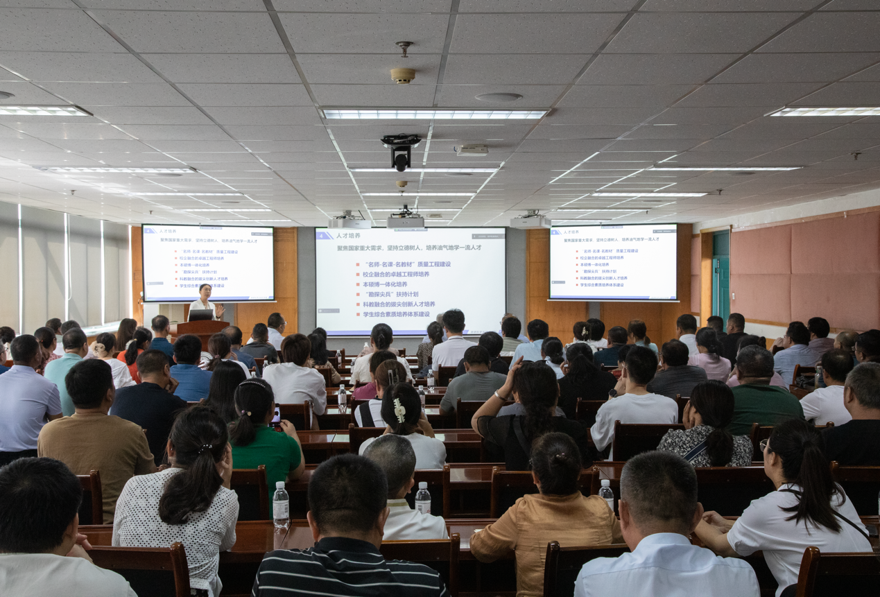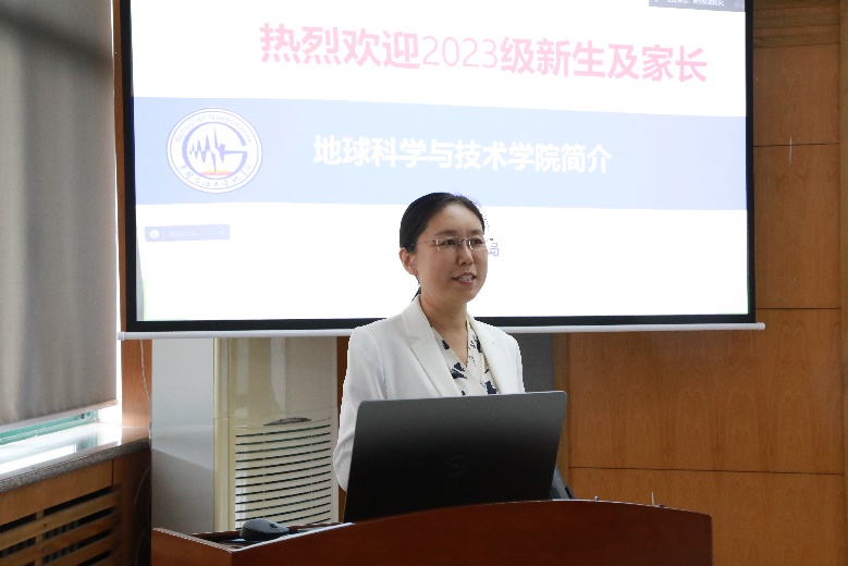 会上,院长刘华教授首先代表学院对2023级新生及家长的到来表示热烈欢迎。刘华从机构设置、学科建设、师资队伍、人才培养、科学研究、国际合作与交流、党建与思政工作七个方面对学院的发展情况进行介绍。她指出,学院构建了理工结合,以工科为特色发展理科,以理科为基础强化工科的本科专业体系,采用了基础能力按照理学培养、应用能力采用工学培养的油气地学人才培养模式。她表示,学院始终怀着聚焦国家重大需求,坚持立德树人,培养油气地学一流人才的初心使命,实力雄厚的“龙头学院”将继续全力助推学生发展,希望新生家长们能够家校同心,共同培育新一代勘探尖兵。