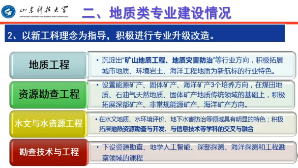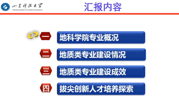 尹会永教授从学院专业概况、地质类专业建设情况、地质类专业建设成效和拔尖人才培养探索四个方面分享了山东科技大学地质类专业建设与拔尖创新人才培养探索。在地质类专业建设中,采取多项有效措施,例如全面秉承“以学生为中心,成果导向,持续改进”的认证理念,全面开展工程教育专业认证工作;基于产出导向优化培养方案,强化过程管理和实践能力培养;强化毕业实习育人作用等。山东科技大学地球科学与工程学院院长常象春教授分享专业建设经验时谈到山东科技大学为省属行业性高校,以培养应用型人才为主,专业建设过程中真正实现了紧扣“立德树人”的根本目标,重点培养了学生解决复杂工程问题,同时注意加强招生宣传,培养学生的专业认同感和荣誉感。通过多年持续建设,教学团队水平显著提升、教学成果丰硕,专业建设再上新台阶,地质工程获批国家一流专业建设点。