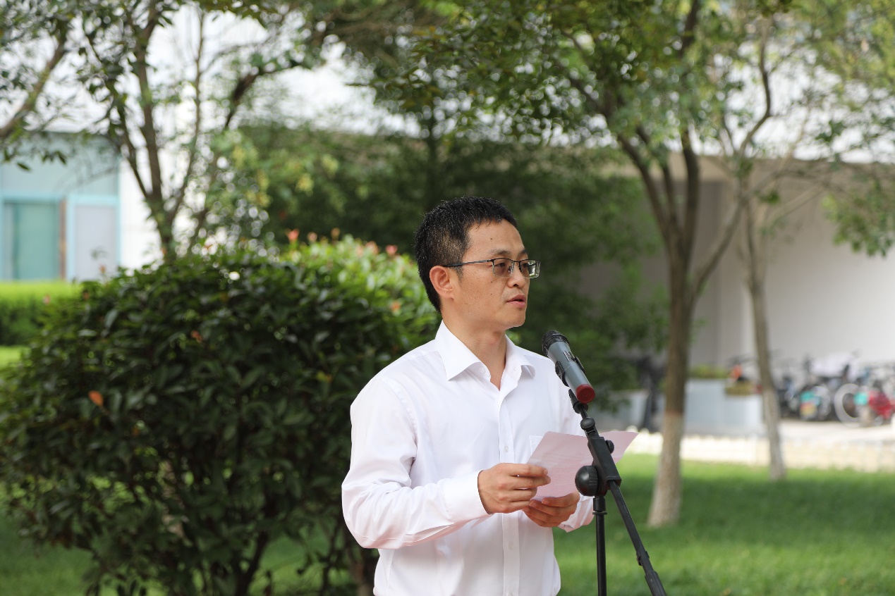 揭幕仪式上,李宁、王勇共同为张庚骥先生塑像揭幕,戴彩丽、李勇、张庚骥先生弟子李善军博士致辞。