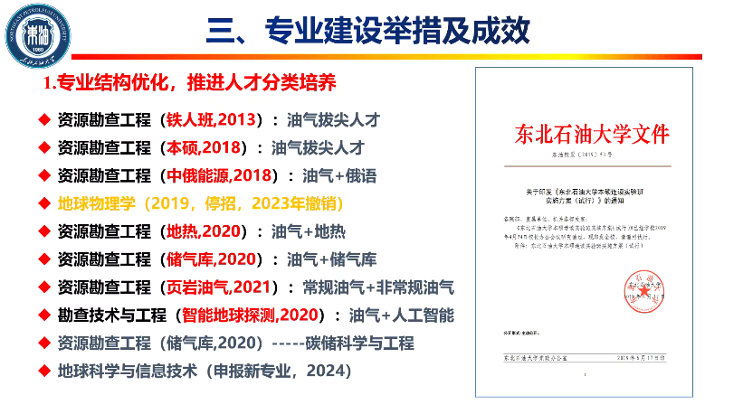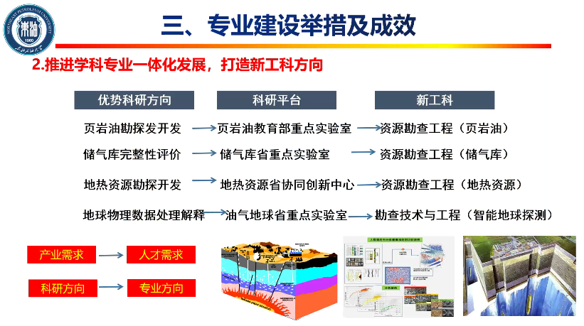 2023年9月28日,资源勘查工程专业教育部虚拟教研室举办了一流专业建设专题论坛。东北石油大学地球科学学院副院长朱焕来副教授作“一流专业建设探索及实践”专题报告,东北大学资源与土木工程学院地质系主任陈家富教授作“激发资源勘查工程专业学习兴趣的探索与实践”专题报告。报告会由太阳成集团tyc151cc院长刘华教授和副院长张宪国教授主持。