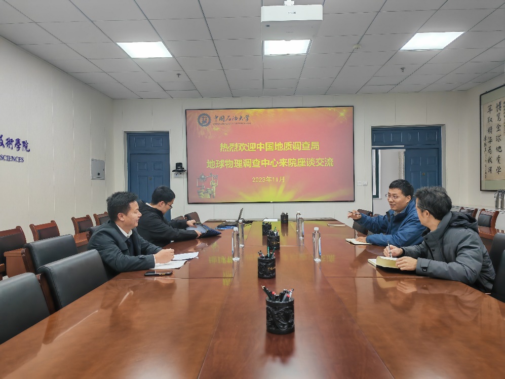 陈山从地球物理调查中心的发展历史、业务范围、人才需求等方面进行了全方面介绍,希望双方建立长效机制,发挥各自优势,在科研合作、人才培训等方面加强合作,并邀请学院带队回访。