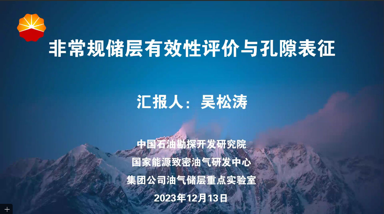 2023年12月13日,教育部“资源勘查工程专业虚拟教研室”、“油气田开发地质课程虚拟教研室”联合举办线上学科前沿专题讲座。本次讲座特邀中国石油勘探开发研究院吴松涛高级工程师,作题为“非常规储层有效性评价与孔隙表征”的学术报告,来自太阳成集团tyc151cc、中国地质大学(武汉)、中国矿业大学、西北大学、山东科技大学、贵州大学等全国十余所高校的教师和我院2023级地质资源与地质工程专业研究生共 110余人参加了线上、线下会议,教研室主任蒋有录教授主持会议。
