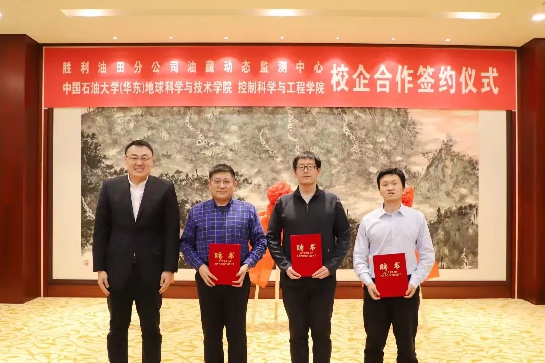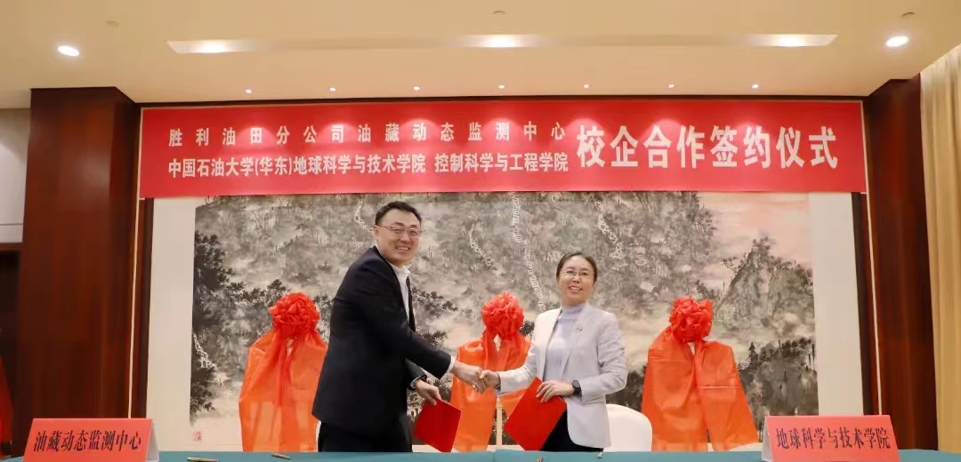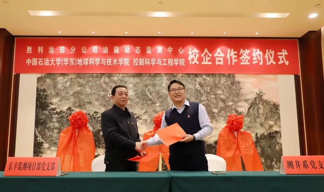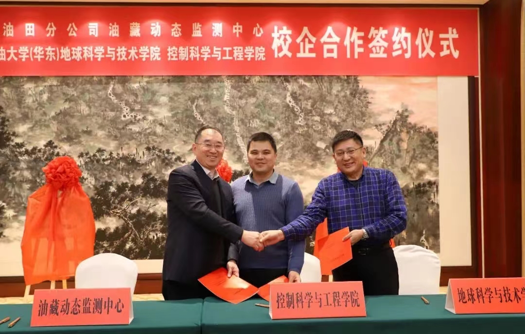 为加强校企合作,推进产学研融合,12月15日,我院与胜利油田分公司油藏动态监测中心(以下简称“动态监测中心”)在胜利油田举行了全面合作协议签约仪式。动态监测中心党委书记、副经理李建荣,经理、党委副书记李洋,油田动态监测高级专家柴德民等企业领导和专家,以及我院院长刘华、办公室主任王冠,控制科学与工程学院党委书记刘伟锋、副院长陈鸿龙等领导和专家共同出席签约仪式。动态监测中心李建荣书记主持会议。