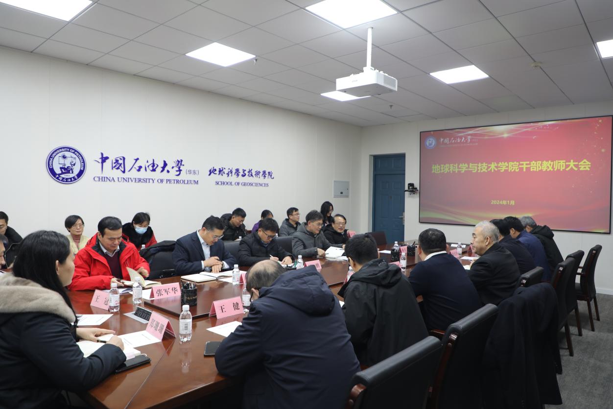 1月18日上午,学校在工科楼C251会议室召开太阳成集团tyc151cc干部教师大会。学校党委常委、副校长周鹏,党委常委、深层油气全国重点实验室党委书记张卫东,党委组织部部长李贞刚出席会议,学院领导班子成员,各系主任、党支部书记,教授委员会主任,工会主席,教职工代表,办公室人员等参加会议。会议由学院院长宗兆云主持。
