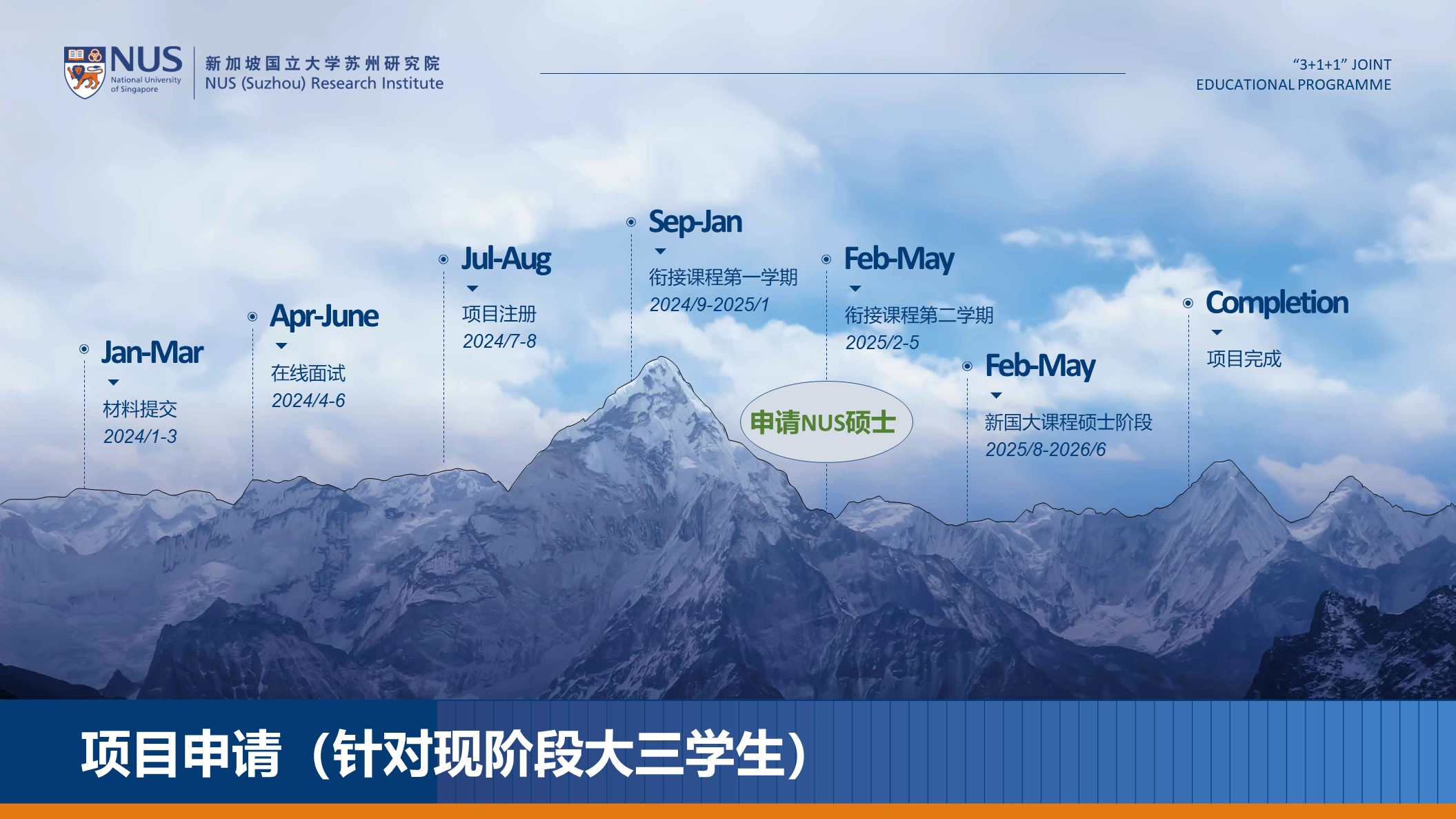 特别说明:2024/2025年度新国大“3+1+1”项目其他专业的报名通知尚未发布,尚待新国大的报名通知。以上通知只适用于申报新国大的环境工程和物理这两个硕士专业的申请者。